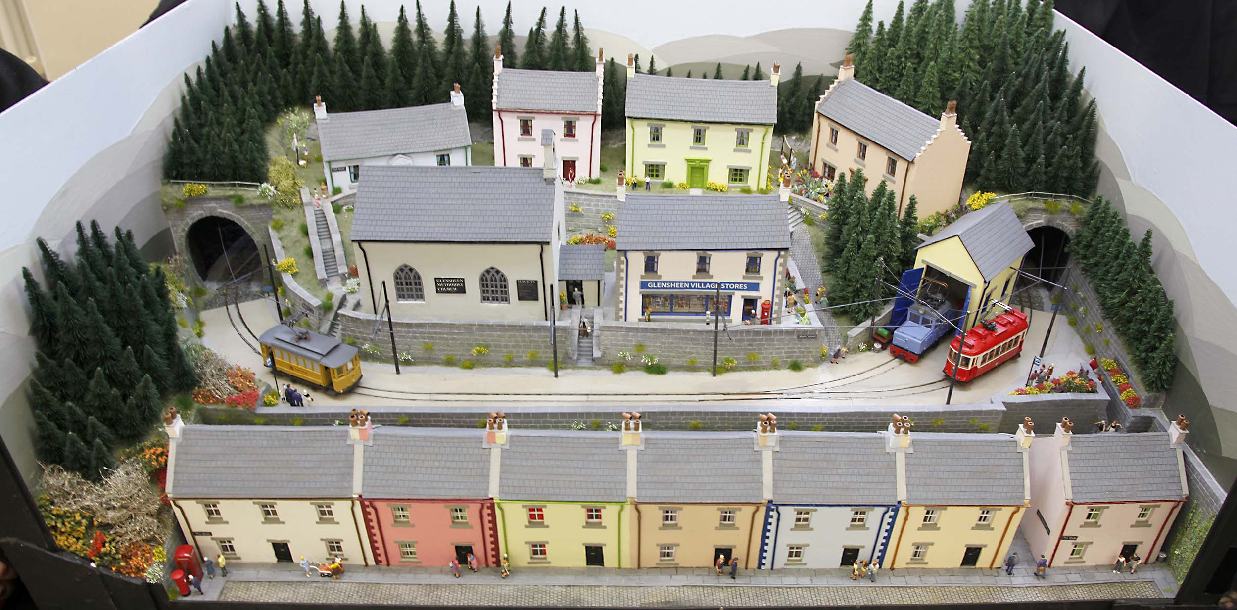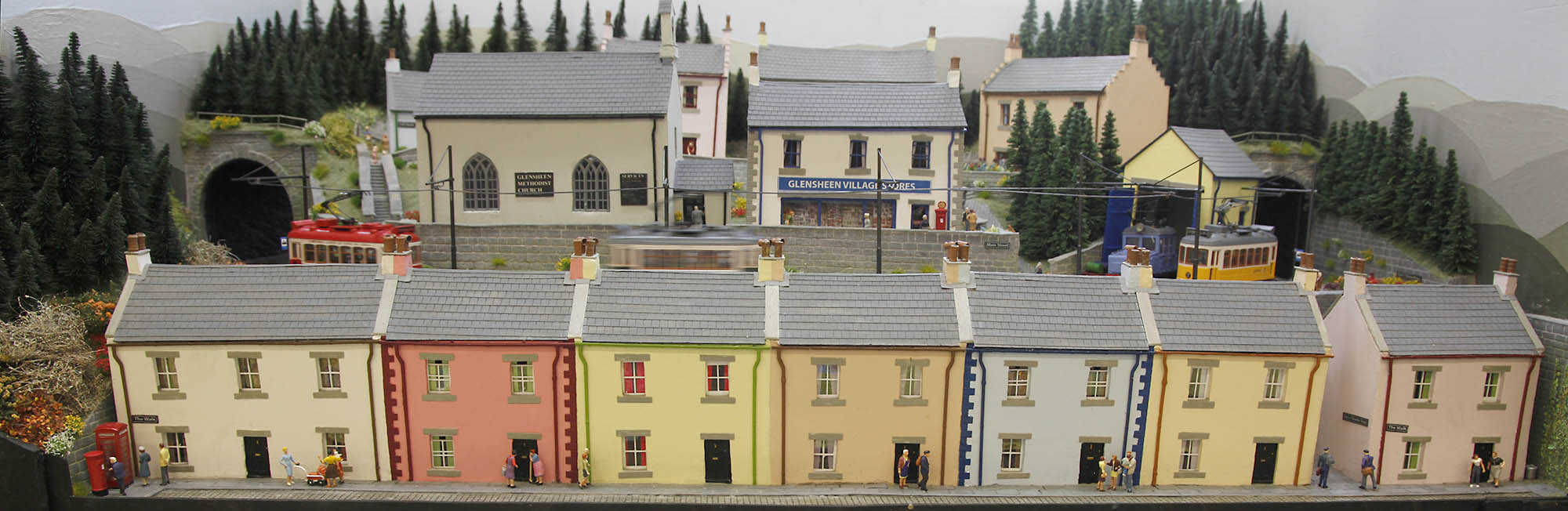 Finally, the Lochsanda Tramway by Lyn and Jim Owers, a fictional 1960s Scottish tramway. I love the colourful houses built from foam board walls, laser cut roof tiles and plasticard lintils.