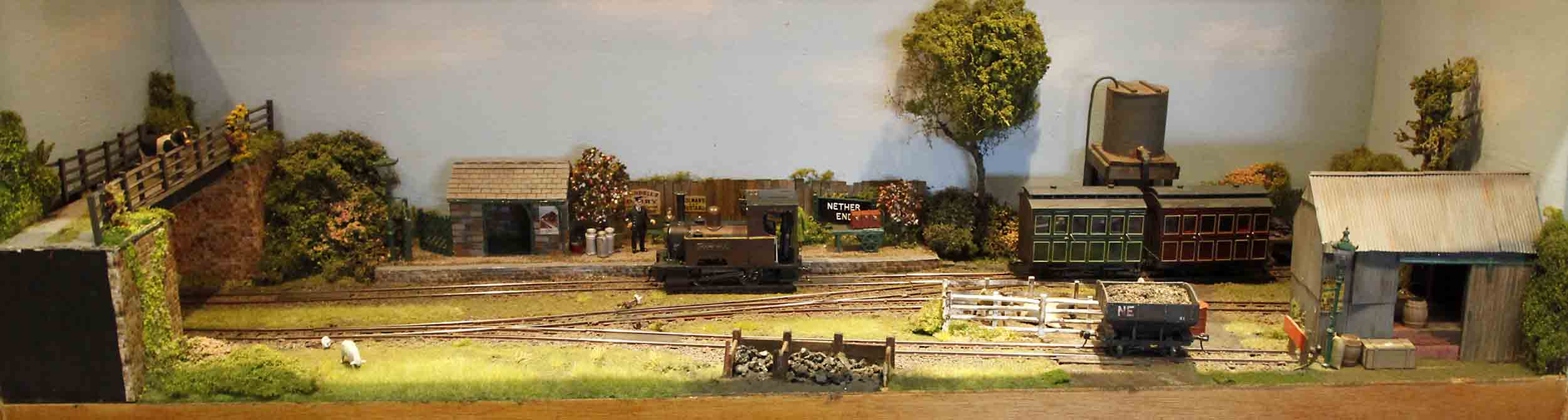 Almost as compact, yet in 0-16.5, is Nether End the small terminus of a minor narrow gauge line by Roger Jones.
