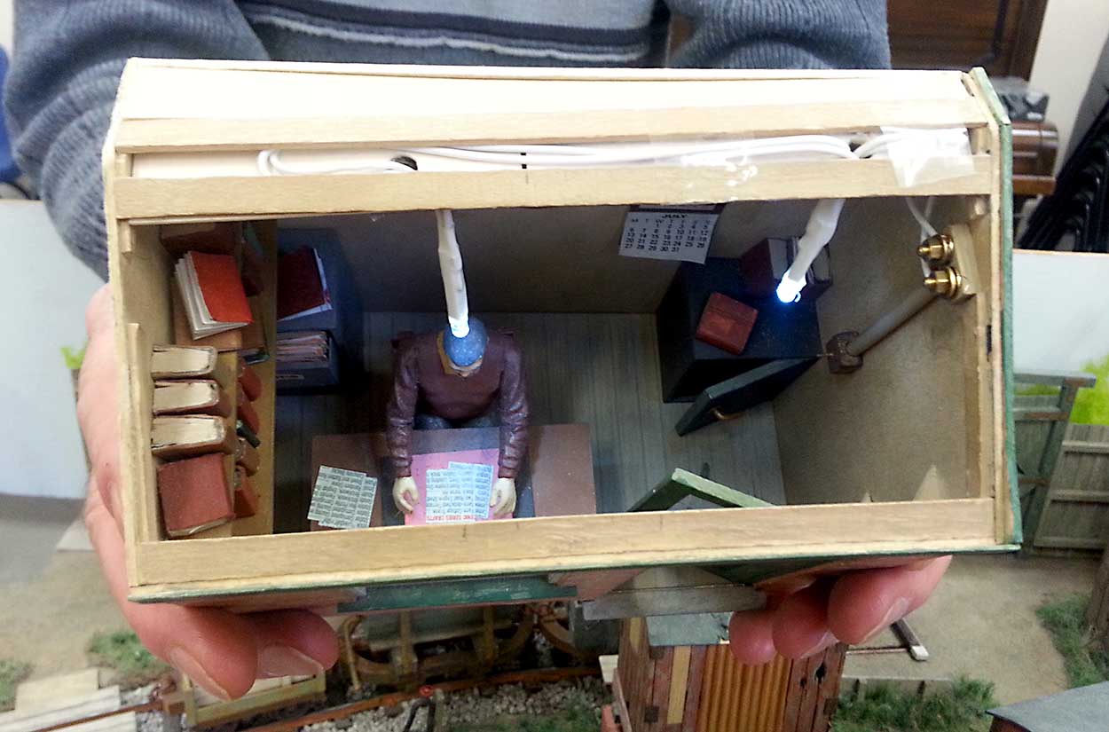 Bill has detailed the interiors of the buildings too. Here’s the yard office. The books and ledgers have individual pages. You can open a book and flip through the pages.