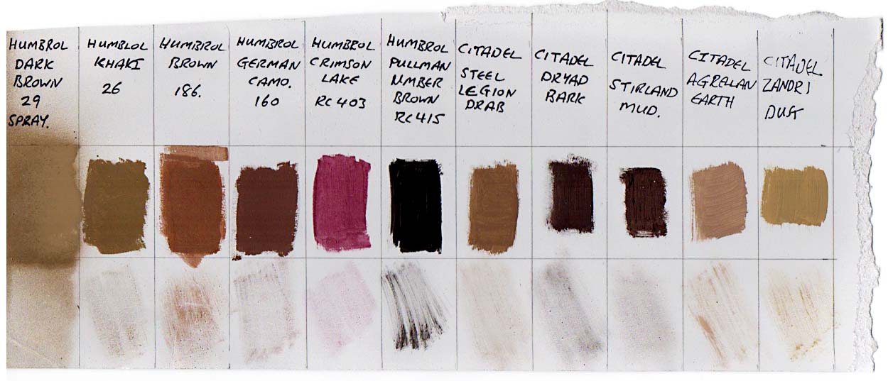 I like Humbrol Brown (186) and Humbrol German Camouflage (160) best because they are an attractive red-brown.