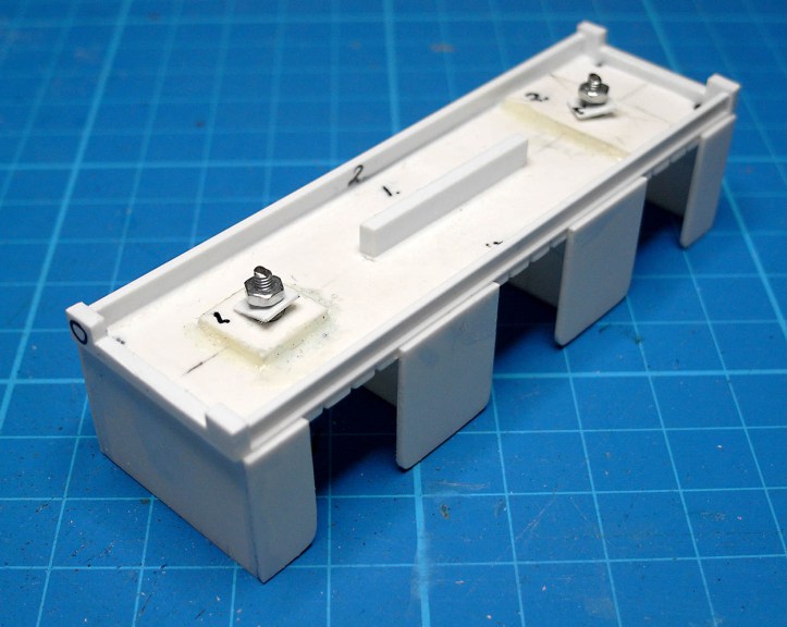 Finally, I added some buffer beams to the ends of the coach and some U channel to represent the sole bars. The underside of the coach isn’t particularly pretty, but it will be hidden from view.