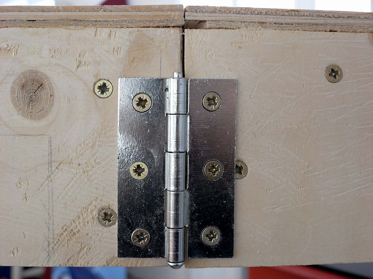 To hold the baseboards together I have decided to use hinges with removable pins. You can pull out the pin to separate the two halves of the hinge and separate the baseboards. I saw this in the British Railway Modelling video of their ‘Edgeworth’ layout (at around 2 minutes 10 seconds in the video). I’m sure this has been done many times before but this is where I saw it for the first time. It looked a neat idea, so I thought I’d give it a try.
