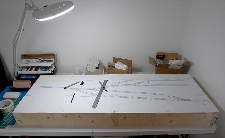 I spent quite some time designing the track plan on the computer. I’m pleased to say it was really simple to transfer an exact copy of the plan on the baseboard and I know exactly where to put each piece of track.