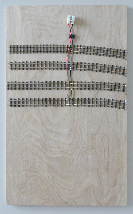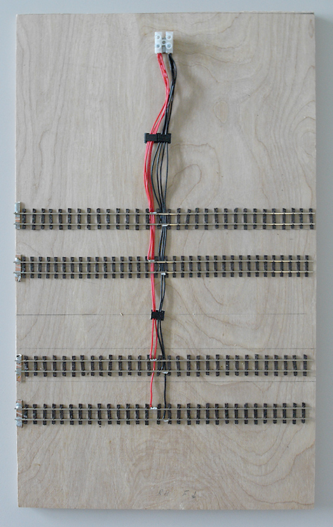 The electrics are complete too. For one traverser I connected one wire to each rail, giving a total of eight wires on the traverser (see above).