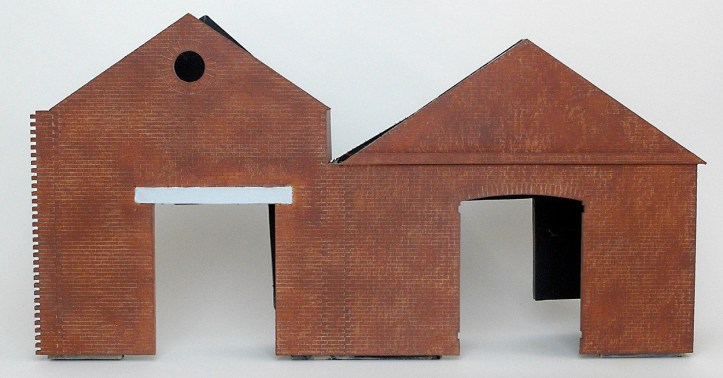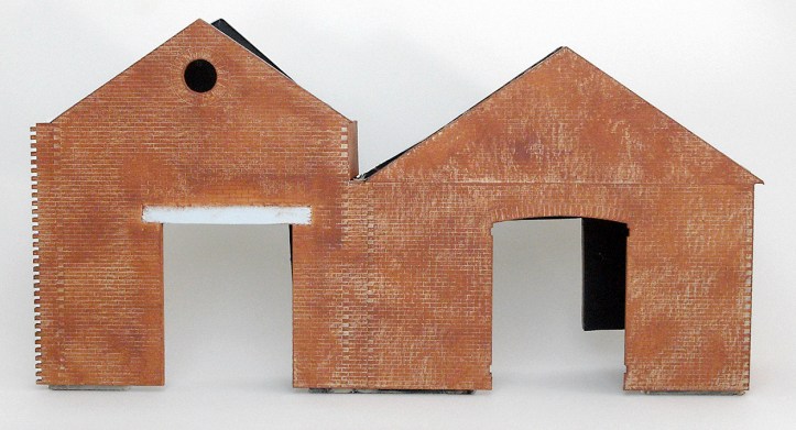To complete this building it was dry brushed with Humbrol Brick Red for a second time, the lintel was repainted to remove the spots of red paint and the building was varnished.