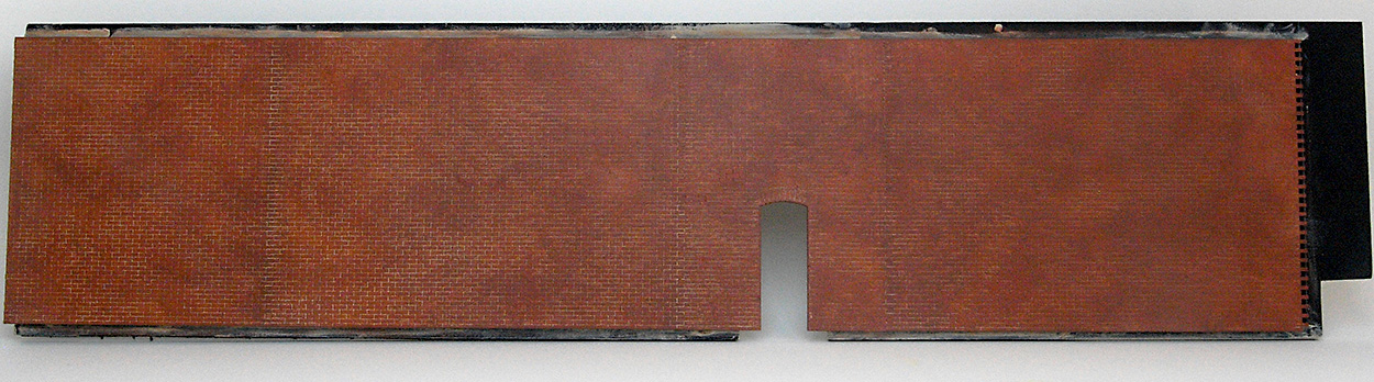 On Thomas and Sons the back of the yard will be a long factory building. Although it is the biggest structure on the layout it was the easiest to create. It consists of one straight wall and the LCut components were mounted directly onto a flat piece of foam board. Don’t underestimate the size of this building though, the wall is 50cm (19½ inches) long!