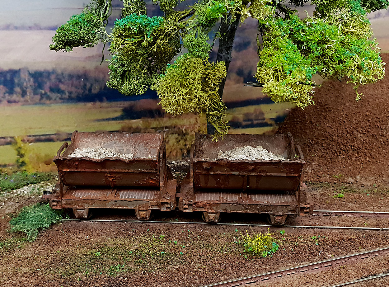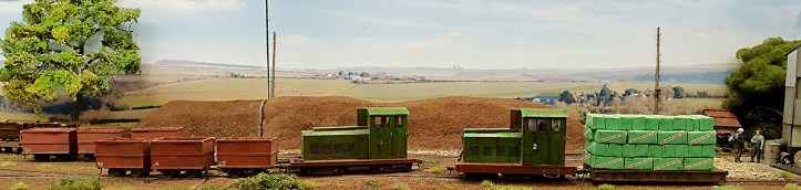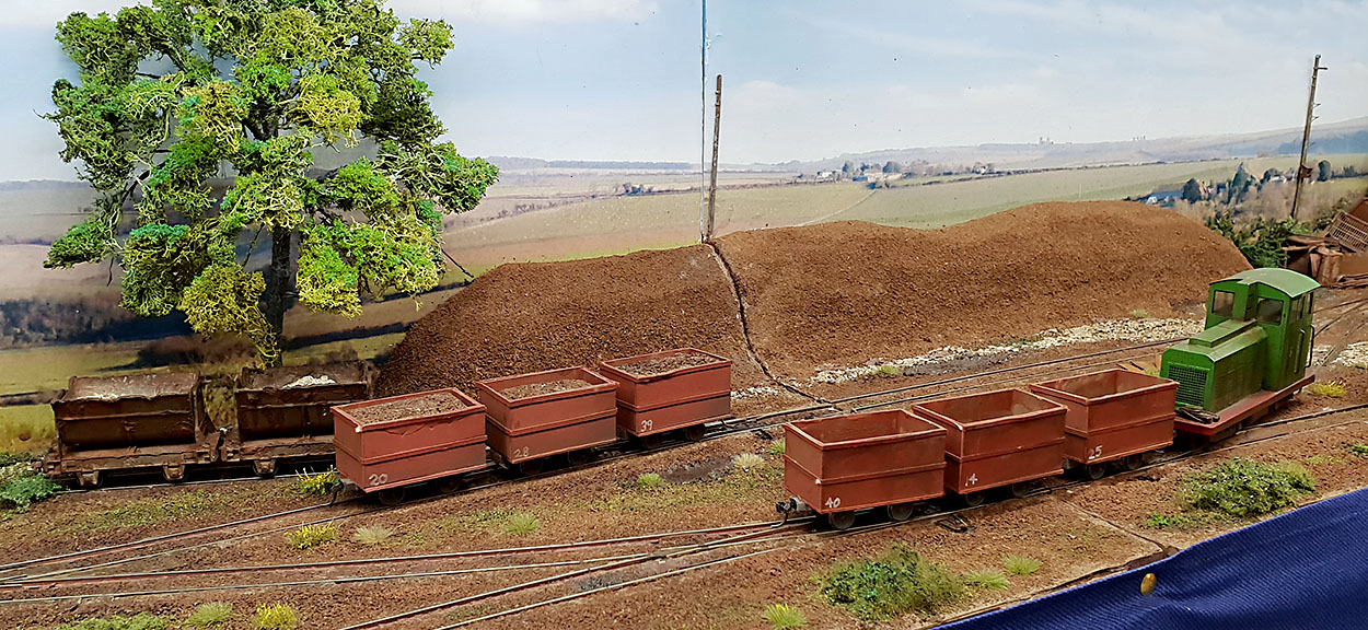 The one I’d been looking forward to seeing was Ben Moor Foot Peat Railway by Graham Moorfoot. It is a fictional model of a 2 foot gauge peat railway in North Lincolnshire in the 1990s. The peat is transported over the boggy land to the processing works where it is put into bags or bales or just stored in a heap to be processed later.