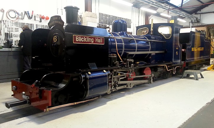 Recently refurbished Blickling Hall, the BVR’s other loco based on the Indian Railway ‘ZB’ class, looked fantastic. The deep blue of the Great Eastern Railway livery is lovely.