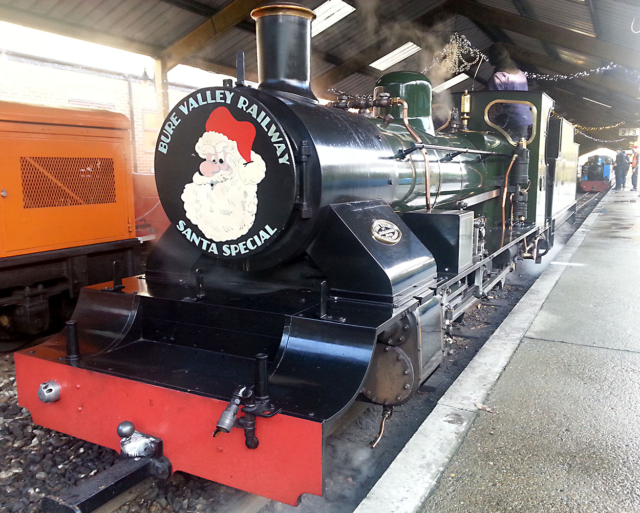 This year I brought myself a Christmas present, a trip on the Bure Valley Railway Santa Special. My train from Wroxham was double headed by Spitfire and Wroxham Broad.