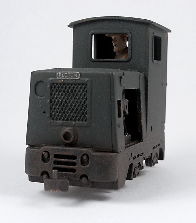 The loco was sprayed with Citadel Caliban Green using a ‘spray can’. The chassis was painted black and the cab details were painted to represent the transmission, dials and brake lever. To allow easy access to the cab interior I had not fitted the roof. When I did, I had to use some filler to fill the gaps between the roof and the cab then carefully respray the join.
