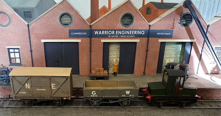 It was a pleasant surprise to see there was a good selection of O gauge layouts and some young modellers. For example Crown Electroyltic Plating Works operated by Mark Chandler (and originally constructed by Colin Heard) a fictional engineering works in the east end of London in the 1960s. This is a nice O scale layout that’s only 4 feet 6 inches (135cm) long.