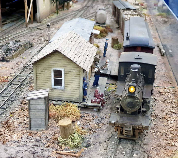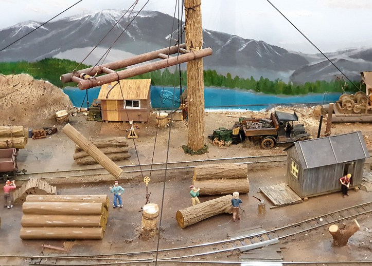 Next, my attention turned to the layouts. Narrow gauge was represented by Mosquito Falls an On30 Canadian logging line from the De Havilland MRS.