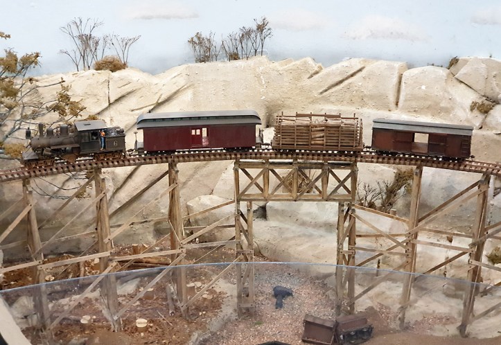 One of the modules features a super curved trestle bridge that carries the line around a 90 degree corner.