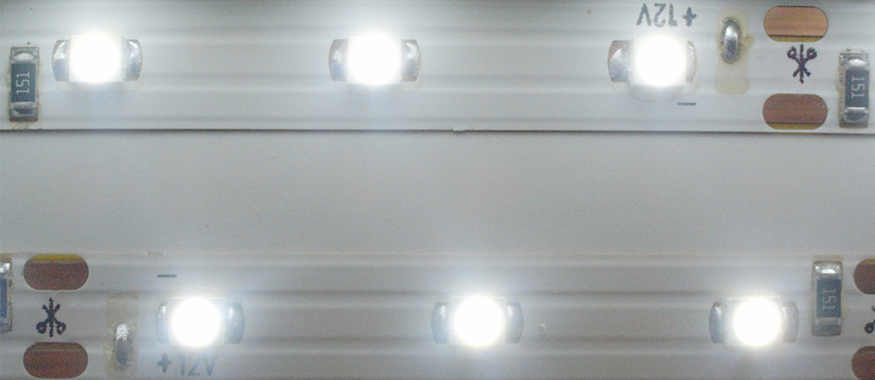 Finally, a little note about the types of LED you can buy. Initially I brought a strip of LEDs with a ‘daylight white’ colour balance (4500K). I found this a little too yellow for my tastes. In the end I used a ‘white’ LED (6400K) which gave a colour that I preferred. It’s just personal taste. Perhaps I prefer the whiter light because the lamp I use above my modelling bench is has a 6500K bulb and I’ve become used to it. Experiment or ask around at exhibitions to see which wavelength you prefer.