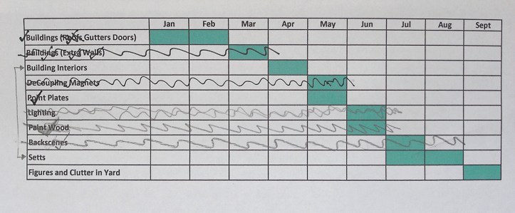 This means the biggest task that remains is making the setts for the yard (and the floors for the interior of the buildings at the same time). I’ve never done this before and I’m a little apprehensive of this job, but I need to push forward with it now.