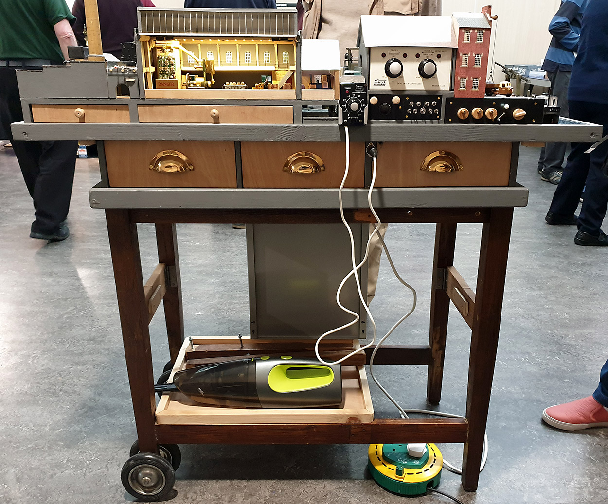 The whole layout is mounted on a trolley that has built in drawers for storing all the tools, uncoupling hooks and other other essential items that one needs to operate a layout at an exhibition. A really clever idea.