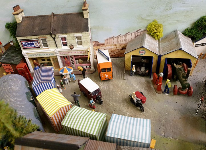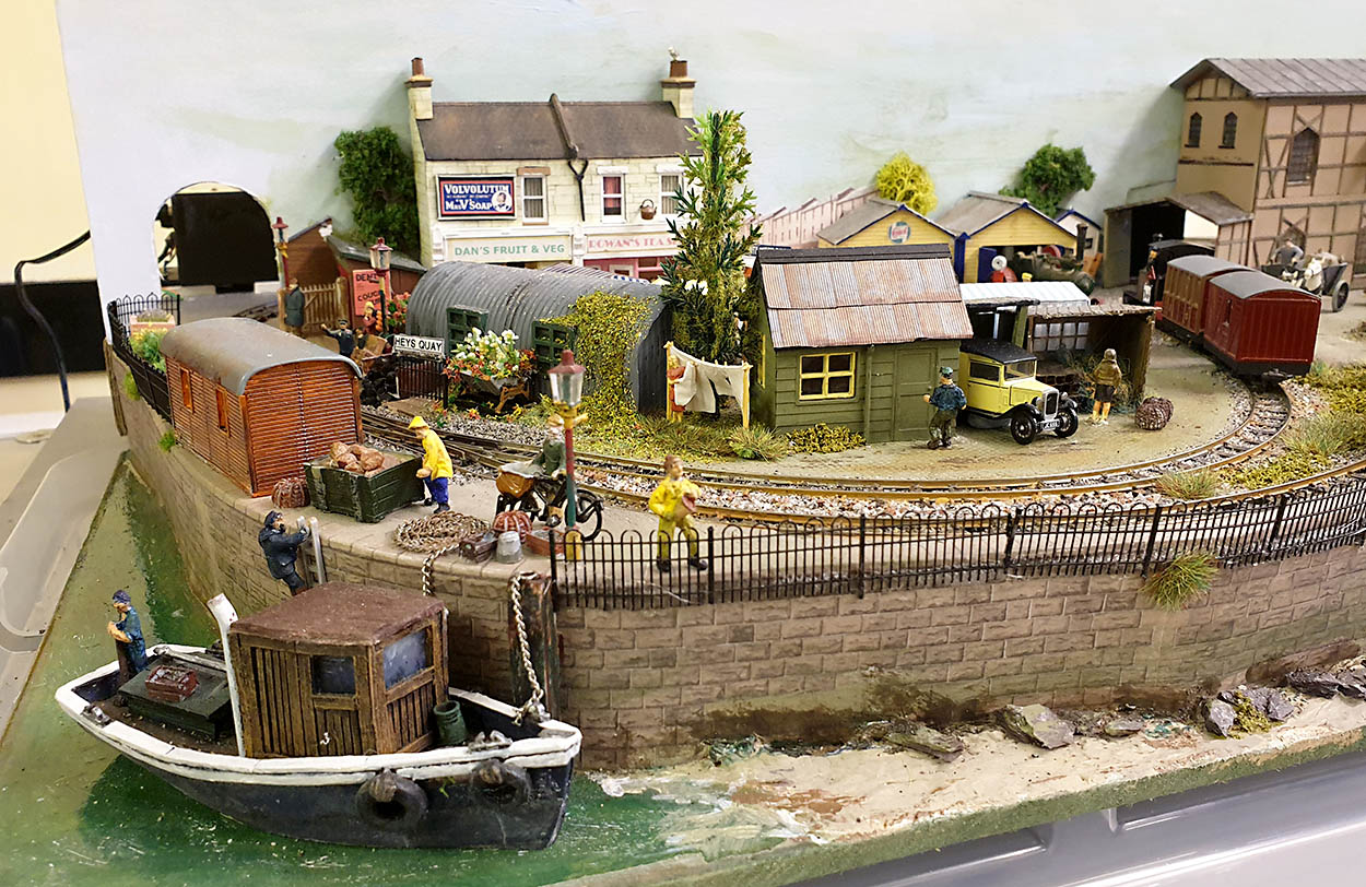 Heys Quay is set in the north west of England on the river Heys near where it meets the coast. Small fishing boats unload their catch and other goods some legal some not but the local bobby is watching. All set in the late 50s it has a good passenger service mainly with small locos and coaches. The layout is housed in an under bed storage box.