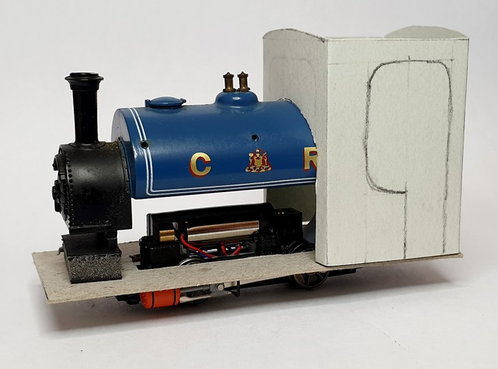 To see if it would be possible to do a pug conversion using the Bachman Rheneas chassis I spend a happy couple of hours in the sunshine making this cardboard mock up.