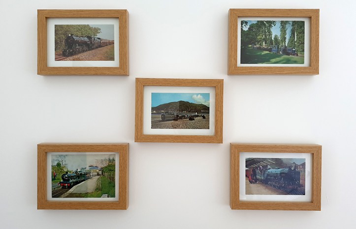 I brought five inexpensive photo frames from Hobbycraft and in a spate of DIY fixed them to the wall. Now I can display some cards and swop and change them as my tastes change.