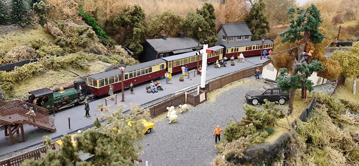 They had two modules on display. Miteside Halt by Steve, on the original 3 foot gauge Ravenglass and Eskdale Railway, where an upturned boat was used as a passenger shelter.
