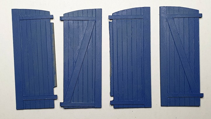 After the blog about the sliding doors Simon asked how I painted them so I thought I’d include some pictures. The doors were sprayed with Humbrol grey primer and painted with Citadel Altdorf Blue acrylic paint.