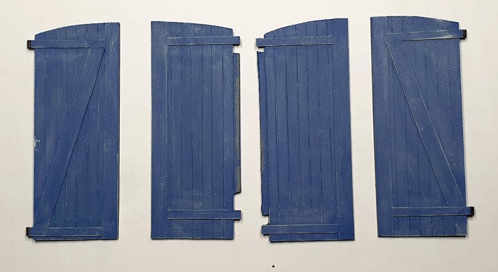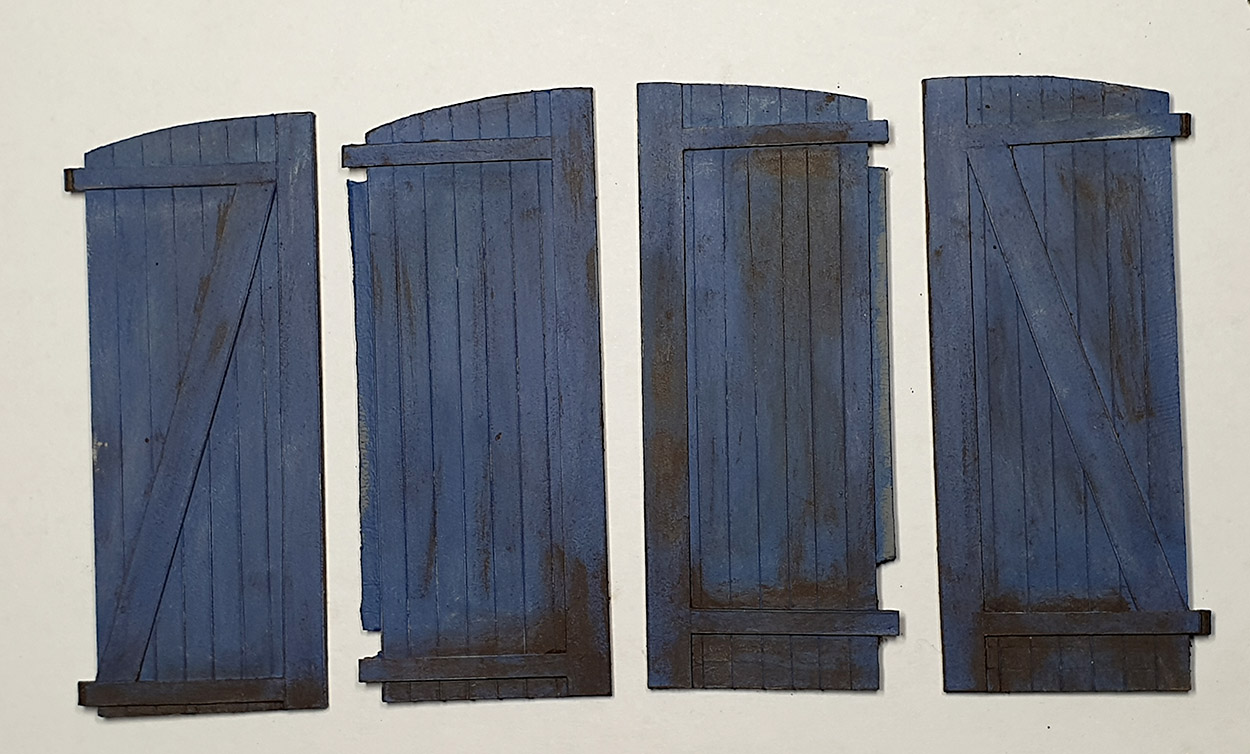 I applied a little too much brown and the doors looked too dirty. To correct this I dry brushed some Altdorf Guard Blue on to the darker patches to lighten the effect. Finally, I gave the doors a couple of washes of diluted black paint (Humbrol RC401). This has accentuated the joints between the planking.