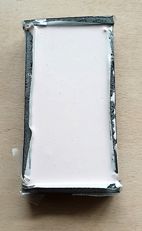 The mixture was carefully poured into the container, I’d read that to reduce the bubbles its better to pour from a height, and this seems to be true. After pouring I dropped the mould onto the bench from a height of about 3 inches (approx 7.5cm) and this forced more bubbles up to the surface. Then I left the silicon rubber to set. Twenty minutes after pouring the mixture I was surprised to see that there were still bubbles rising to the surface. I guess it’s good they were coming out, but I need to be careful not to create bubbles in future.