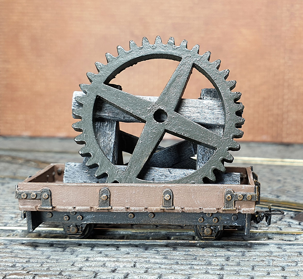 The trestle will be used for transporting large loads that are too wide for the wagons, such as this large drive wheel…