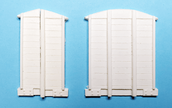 The van is 42mm (1.7 inch) wide and my O9 loading gauge is 28mm (1.1 inch), meaning around 14mm (0.55 inch) would have to be removed from the ends. By a happy coincidence this is the width of one of the end panels plus one stanchion. I carefully cut the ends with a razor saw. In the photo below the left hand one has been cut, the right hand one is the original.