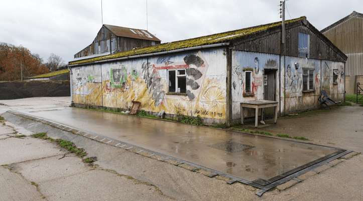 Here’s an alternative. An agricultural weighbridge, lost in the Cambridge countryside, with a grain silo on one side…