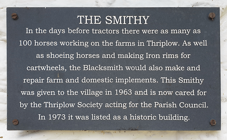 Photographed in May of this year, this is the old blacksmiths forge in the small village of Thriplow, England.