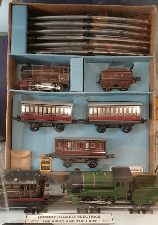 The museum has many sets still in their original boxes, such as this charming clockwork LMS set.