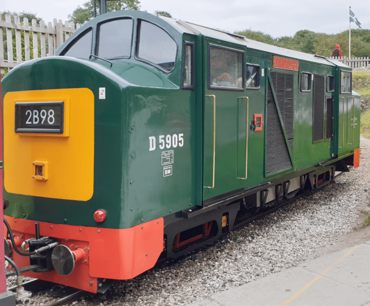 A 15 inch gauge line takes visitors from the car park station, Benny Halt, to the main leasure park, East Wheal Rose station. I was pleased to see that ‘City of Derby’ was the loco hauling my train. Based on the Class 23 ‘Baby Deltic’, it’s a chunky loco and strangely attractive. After the closure of the Markeaton Park Light Railway it moved to the Lappa Valley Railway where it has been totally rebuilt. City of Derby looked lovely and ran well – clearly the rebuild was successful.
