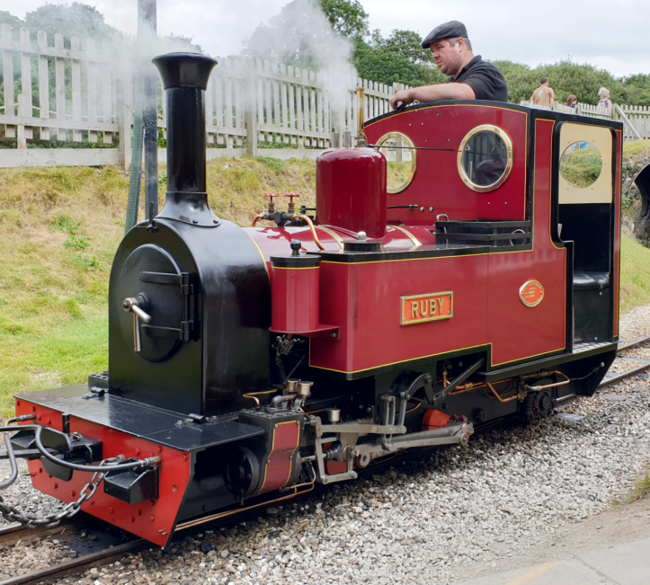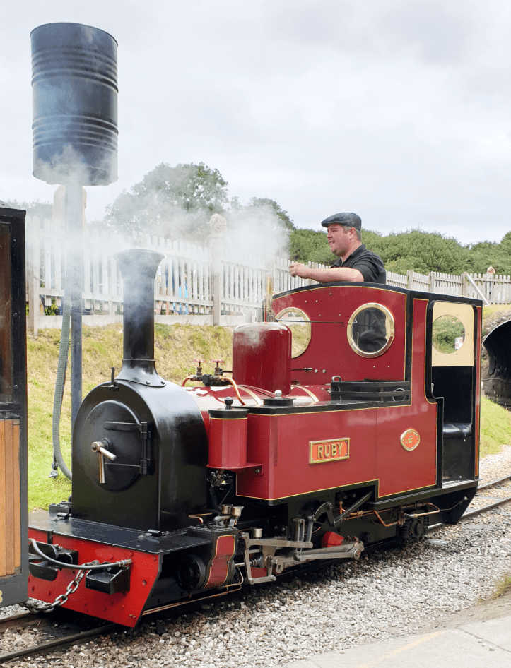 Our return journey to Benny Halt on the 15 inch gauge line was headed by a 0-4-2, Exmoor tank locomotive. The loco arrived at Lappa Valley for the 40th anniversary of the line and was called ‘Ruby’. Exmoor locos have very similar design features and there is a strong ‘family resemblence’ that makes them very recognisable. However, this was the first time I’ve seen an Exmoor operating without a cab roof. I guess standing up in the cab gives the driver good visibility. It would look great on a model!