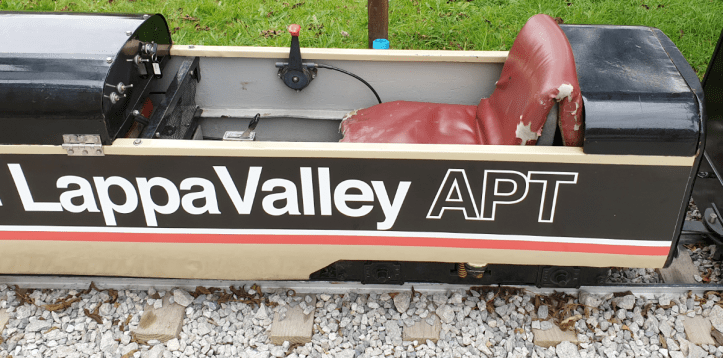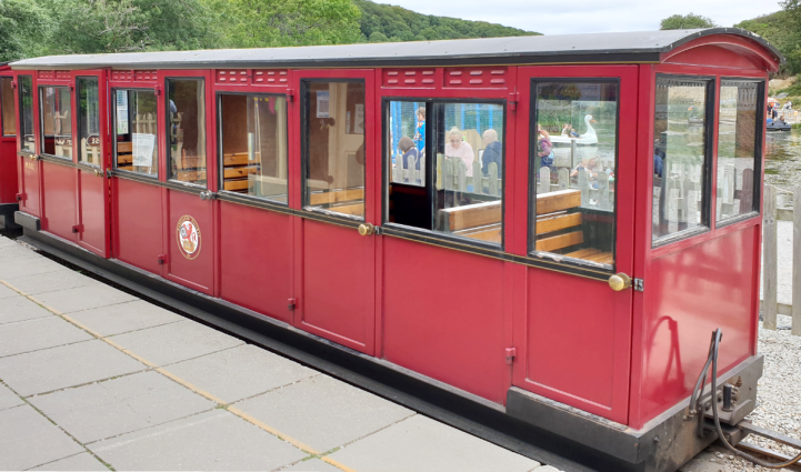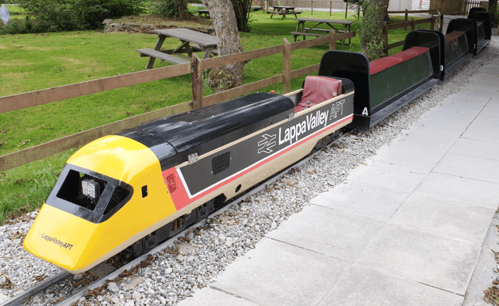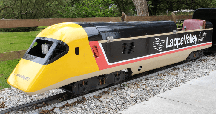We took a ride on the 7 1⁄4 in (184 mm) gauge Woodland Railway that runs around a smaller lake. The loco was the Advanced Passenger Train, well, a model of the APT build by Mardyke in the early 1980s. It was operating without the front ‘valance’ and looked a little odd, but it gave us a good ride around the lake.
