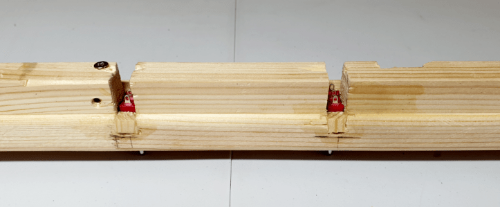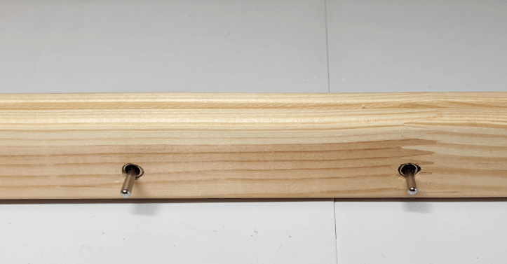 However the switches had to be recessed into the wood to allow the toggle to protude through the front. This was trickier to do, but with a saw, a drill, a chisel and a bit of bodging I managed to do it. It’s not pretty, but it will be hidden from view ๐