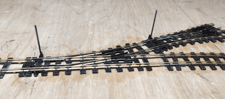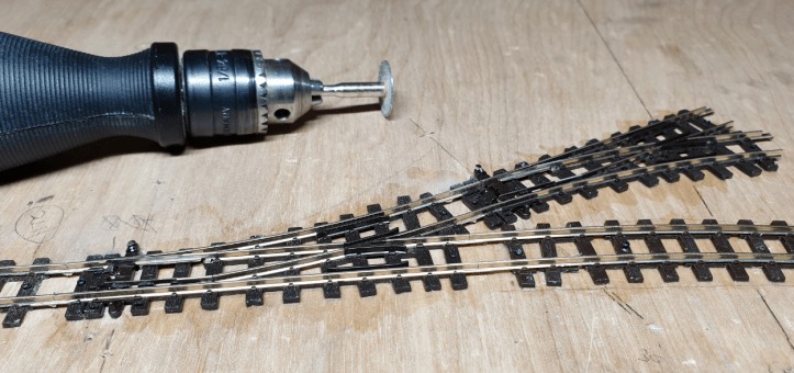 Standard advice is to mark where the pin needs to be cut, remove the point motor, cut the pin and then remount the point motor. I didn’t do this, instead I cut them off in situ using a cutting disc in a mini drill. It worked for me!