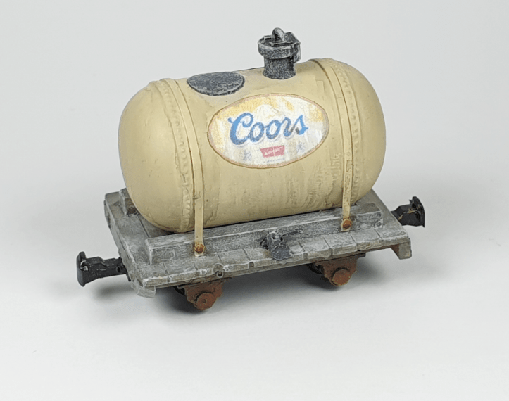 After a little more painting and some decals we have a tanker branded with Coors Banquet – the classic American beer.