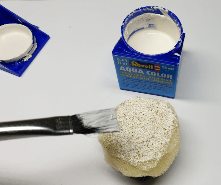 It’s quite controllable. I applied too much white in one place so I got a clean sponge and dabbed some sky blue paint on to tone down the white.