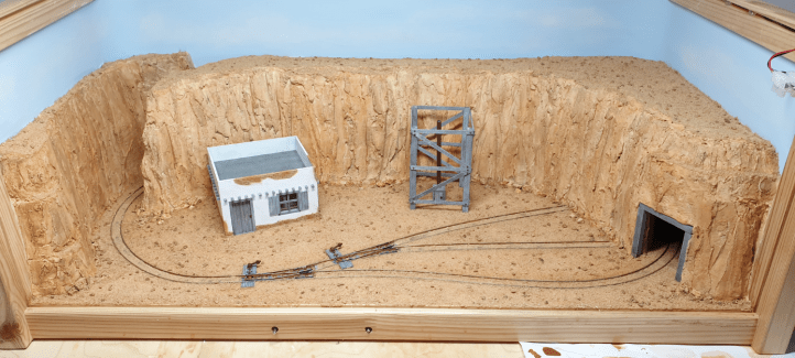 The colour of the sand I applied doesn’t match the rock faces, so I need to fix this.