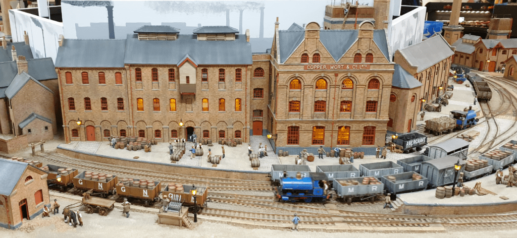 Harkness EM 18.2mm gauge by Tony BucknellHarkness EM 18.2mm gauge by Tony BucknellA light railway running to the Northumbrian seaside town of HarknessBarnwood N gauge by Andrew FardellImpressive port with container, grain and steel terminalsFenland & Spalding Model ClubVery nice dioramasBillingborough 00 by Graham MoorfootSet in the 1960sFreight is mostly agricultural productsI liked the atmosphere, especially this rural sceneCroft Spa N gauge by Les RichardsonA small station in the East Coast Mainline, County DurhamLovely row of terrace housesDCC control with manually operated pointsEyemouth N gauge by John SpenceEyemouth in Northumbria prior to WWIILovely buildings and sceneryLimited passenger service – this is all the passenger stock!Witham 00 by Martin ReynoldsFictitious layout based in SomersetNice BR Western Region themeI liked the church on the hill topBelow baseboard level is this nicely modelled canal sceneCopper Wort 00 by Peter GossEarly 1900s in Burton on TrentThere is a lot of modelling on this layout, and it’s all very high qualityProbably my favourite layout, it has lots of detail and retains a sense of spaceBallyconnell Road Irish Broad Gauge, 3mm/foot, 15.75mm gaugeSet in the Irish Riviera, County Sligo, 1955A circular layout representing 5ft 3in gaugeCharming layout, probably the layout I’d like to own !Burnroyd Works 00 by Chris BurnageSet in 2008 to present dat the layout features a large steel fabrication plantThe plant creates a great backdropI liked the well modelled detailsThe muted colours and weathering were very well doneRumbling Bridge 00 by Nick SkeltonA Scottish branch line in c. 1960Cleverly the viewer must look down into the cuting to see the trains theArcadia Pennsylvania US O gauge by David & Susan GeorgeThis is a lovely layout, gain the colour tones and weathering were fantasticThe stock was huge and had real presenceNicely modelled cameos too