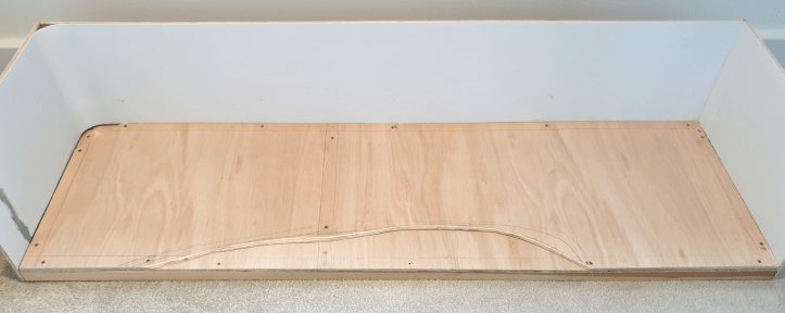 An additional layer of plywood has been added to the main baseboard, with a ‘cut away’ to create raised and lower ground. Plus I’ve built a baseboard for the fiddle yard.