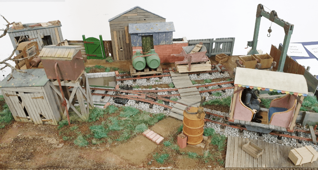 The N&SNGM run a challenge at each exhibition. This year it was to build a layout with a maximum area of 4 square feet (0.37 square metres). There were seven entries and the public was invited to vote for a winner. And the winner was… Lysander Farm.