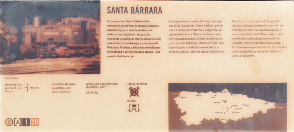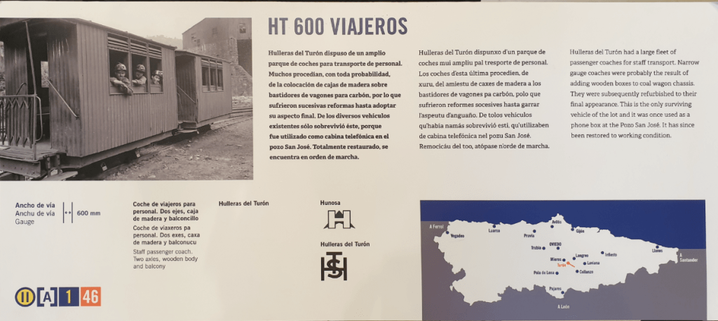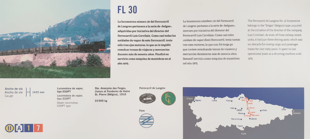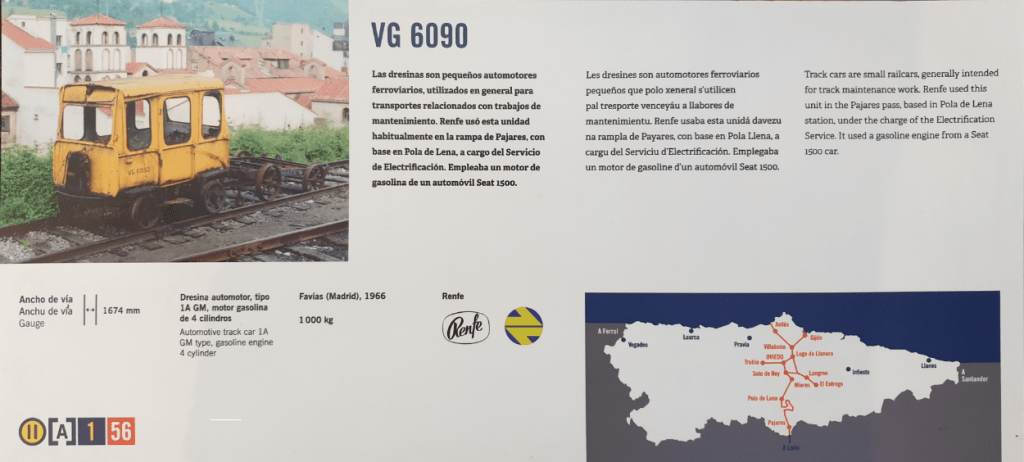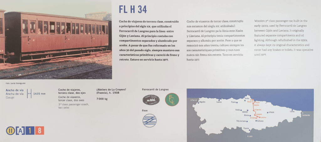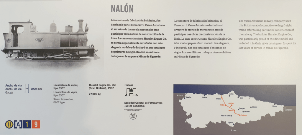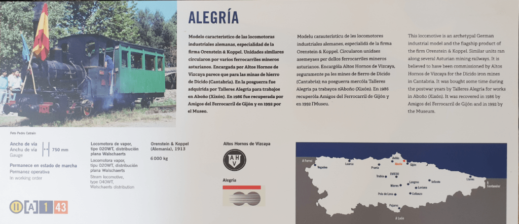 It is an excellent museum. Covering an area of 14 000 square metres, it has a fantastic collection of Spanish broad gauge, metre gauge and, because Gijon was an important mining area, 600mm (2 feet) gauge lines too.