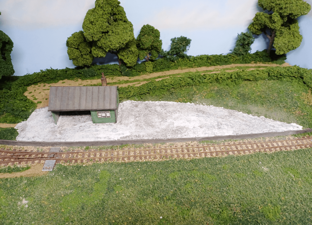 The station area was pretty straightforward, apart from using the ash for the platform. It didn’t seem to adhere to the glues I used. After three partially successful attempts I resorted to flooding the platform with diluted PVA glue (white glue), with the usual ‘drop of washing up liquid’ added of course. This worked, but I will be using normal model railway scatters for my platforms in future!