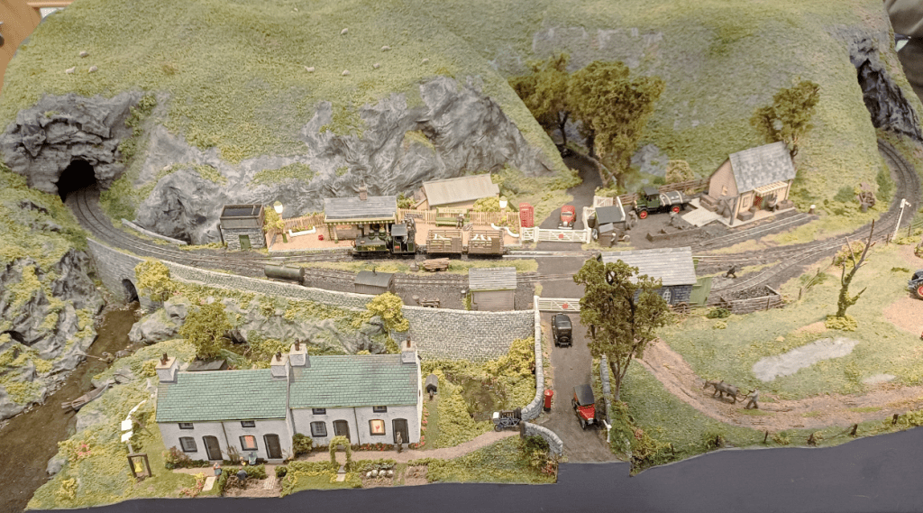 Brenlyn is a small Welsh village modelled in 009 narrow gauge with a mix of RTR and kit-built stock by Glyn Bennet. I know Glyn from his G scale narrow gauge layout and I was surprised to see that he modelled in OO9 too. The scenery on Brenlyn really appealed to me: the view up the lane and the superbly modelled cottages.