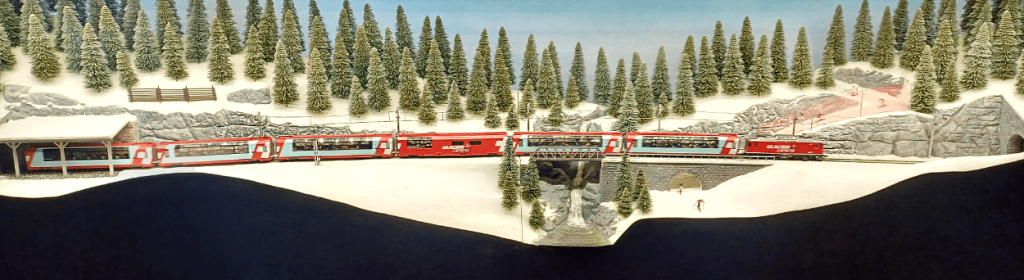 El Tortuga HOe, originally built by Don Sibley in the 1980s.It is a charming little micro layout.There’s even a balloon loop to add operational interest..Now owned by Rob Rossington and Charlie Insley and running a nice selection of their stock.B.A. Cookes Engineering, O-16.5 and standard gauge.Lovely 1:12 scale Sir Arthur Heywood stock.These locos run on 1.25 inch gauge track (OK, 32mm) which scales out nicely to the 15 inch gauge prototype.Interesting demo of the Sir Arthur Heywood couplings.Kitson Castle & Peckett Pier 009. This is the pier end.This is the castle station end.Really beautiful Swiss layout, Kreuzweg in HOmLovely scenery, I could watch the trains for hours!The layout has super details, such as these skiers and safety netting.The waterfall is beautifully modelled.Lunch. Pie, chips and mushy peas. The mushy peas look a bit odd in the photo but they were delicious.North Winterton in 009 by Martin Hallett, with a scenic area 3 feet (90cm) long.Lovely modelling of a snow scene with the underlying ground cover showing through the snow.Redwood Lumber – On30Very attractive atmosphere.Great buildings…… and very detailed cameos.One of my favourite layouts of the exhibition.Fitzwilliam Basin O9 layout by Andy BoothFictional layout based on buildings from the village of Elsecar in Yorkshire.The layout ooses atmosphere…… and is full of subtle details.Andy obviously loves making buildings. This wall was made from foam board.Even the areas that are not immediately visible are highly detailed.Canal side warehouse at one side of the layout.