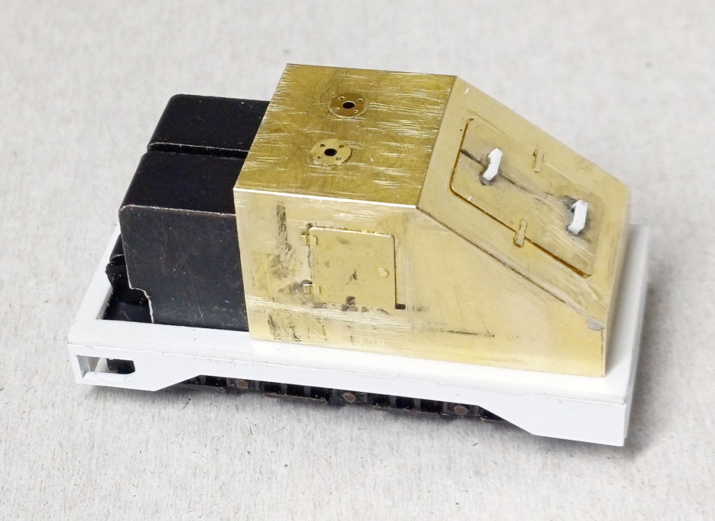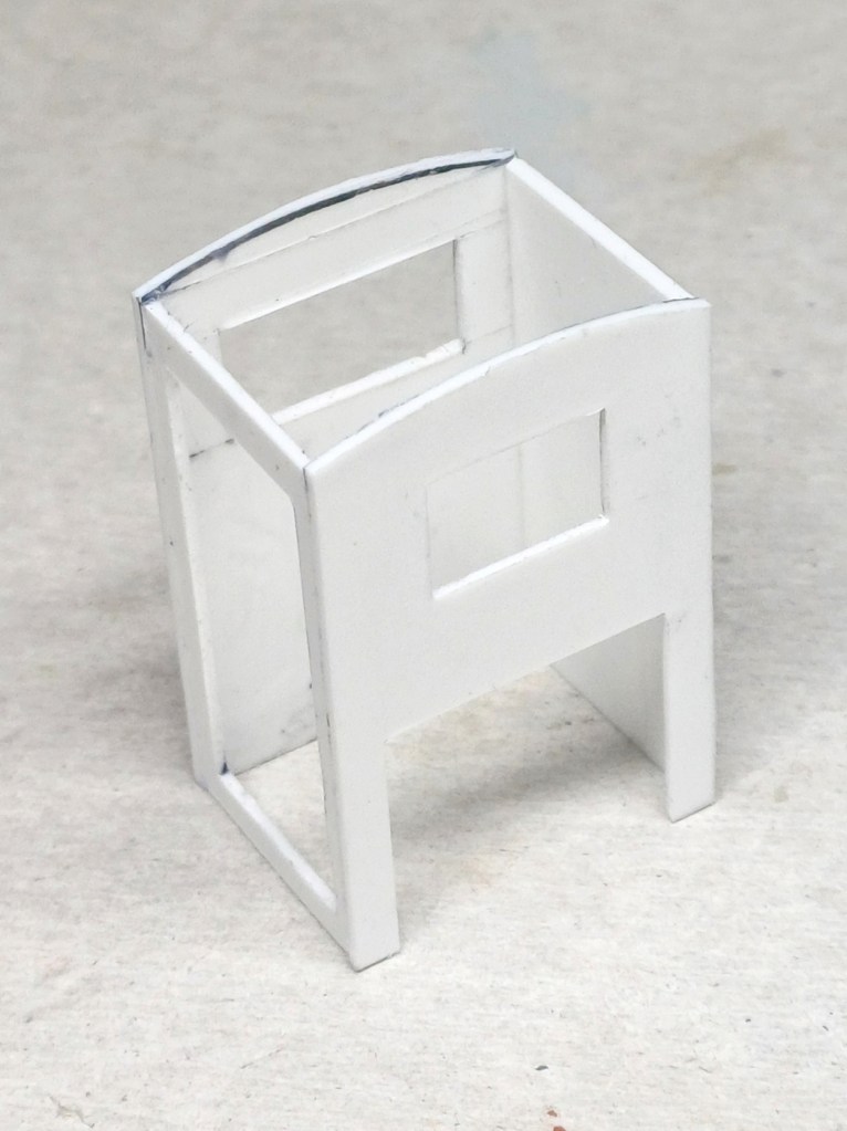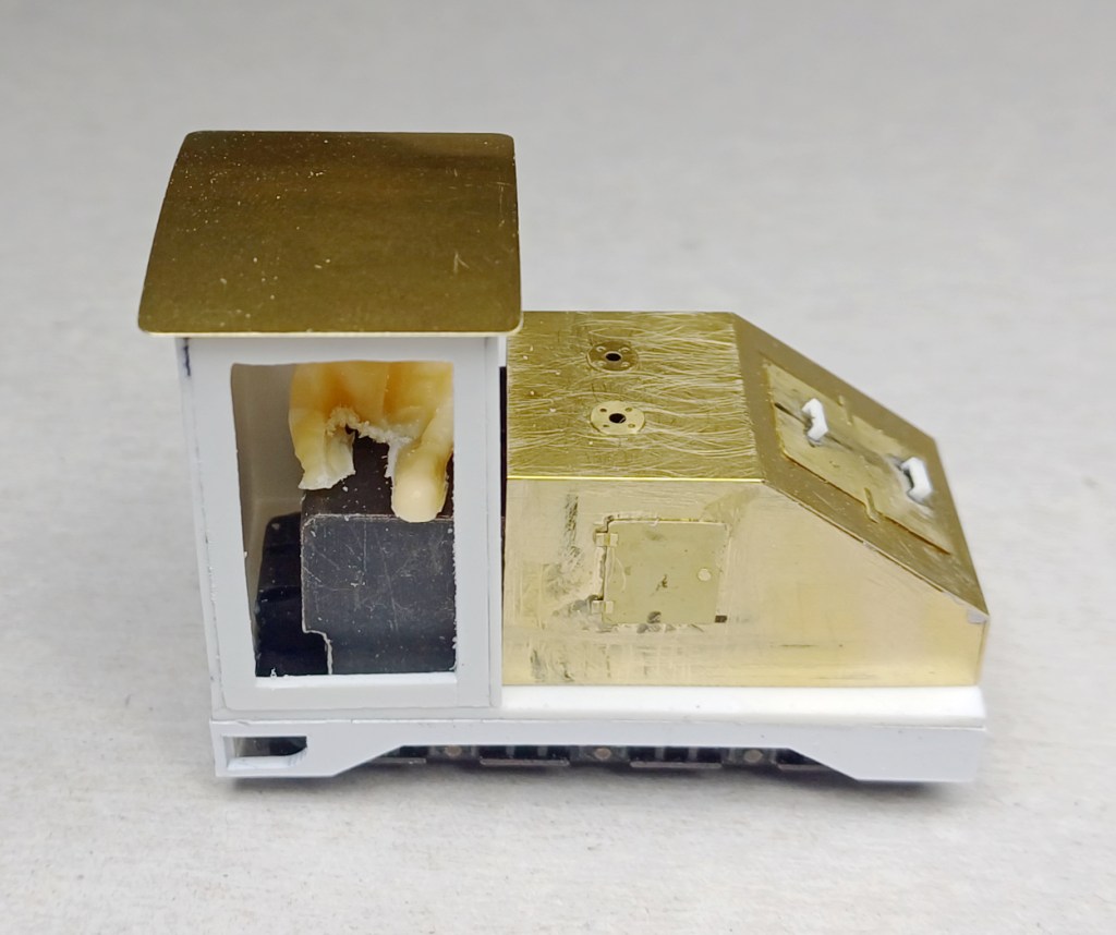 The starting point is a nice brass and plastic kit.The Bachmann Plymouth chassis came via the 009 Society sales.The body was unclipped to reveal the ‘old school’ split chassis.The kit contains a plastic footplate.Filling and squaring up the gaps between the tabs and the holes felt like a lot of work.So I made a new footplate from plasticard, cut off the tabs and glued the pieces together.It fits 🙂The bonnet is a single piece of brass that you fold up.I soldered the edges together.Then glued detailing parts on with superglue.It fits 🙂I had intended to make an open cab loco.But the driver sat rather awkwardly on the chassis and didn’t look right.Instead I made a cab from 4 pieces of plasticard.It’s really a simple box, with ‘cut outs’.In position it looked too tall.So I made a Mark 2 cab that was shorter and slightly longer.This looks better !A cut down figure will provide the driver.The roof from the 009 kit can be reused.There’s much to do, but it has potential 🙂