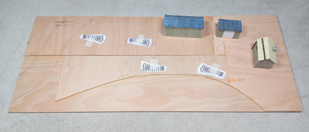 The baseboard and back scene were made from a sheet of 9mm plywood that I… er… rescued from a skip. (I did ask before I took it… honest!).