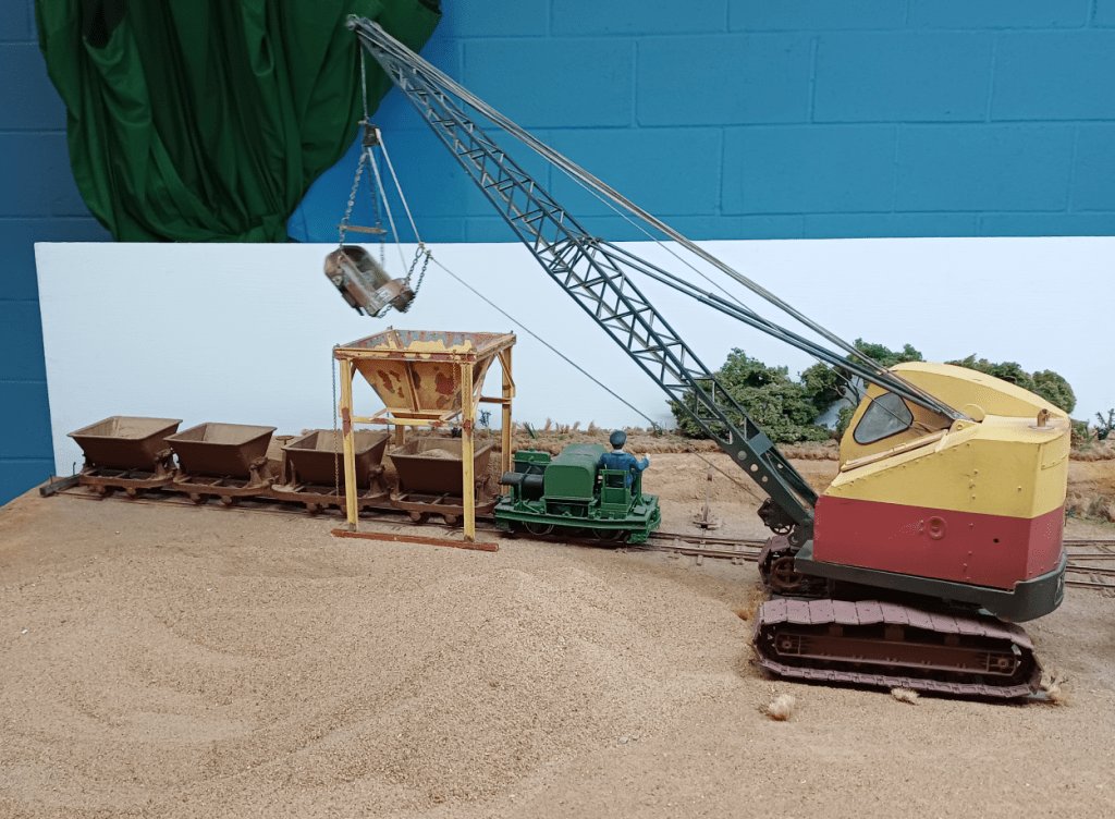 Fen End Pit, in 16mm scale, 32mm gauge (SM32) by David Barham. It represents a 2 foot gauge line serving a gravel pit somewhere between Ely and March in Cambridgeshire. It features a working Ruston dragline that loads skip wagons with real sand. The wagons are propelled by IC locos, including some lovely Simplex locos, to the gravel works at the other end of the layout. It is a good idea, really well executed and the modelling is excellent.